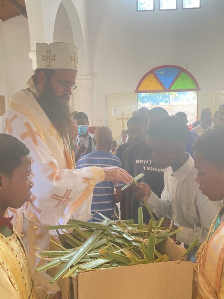“Τι είδους παιδιά θα δώσουν Αίνο στο Χριστό;” ερωτά σε επίκαιρη ανάρτησή του, ο Θεοφιλέστατος Επίσκοπος Τολιάρας και Νοτίου Μαδαγασκάρης κ. Πρόδρομος. “Εκ στόματος νηπίων και θηλαζόντων κατηρτίσω αίνον» (Ψαλμ. 8,3), φωνάζει ο Δαβίδ. Και το φωνάζει ως Βασιλιάς και προφήτης, βλέποντας ότι ο Κύριος της δόξης σε όνο (γάϊδαρο) καθήμενος, επί της αλόγου κτίσεως, θα γίνεται δεκτός με αλαλαγμούς παιδιών. Δεν είναι λίγες οι φορές, που κατά την τοπική παράδοση των φυλών της Αφρικής, πιστοί, όντως πιστοί, αλαλάζουν με κραυγές όταν βλέπουν τα Άγια να εμφανίζονται στην Ωραία Πύλη, όταν βλέπουν τον παπά να ευλογεί, όταν εικόνες λιτανεύονται. Αυτά είναι τα παιδιά της προφητείας. Όσοι με καρδιά παιδιού, ήτοι καθαρή και άδολη, κράζουν για τη σωτηρία τους. Έτσι και σήμερα. Εν φωνές κοινώνησαν των Αχράντων, εν φωνές αγγελικές. Γι’ αυτό μπορώ να πω με βεβαιότητα ότι υπήρχε διάχυτη κατάνυξη!”.