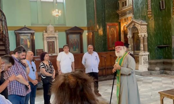 Σε ένα ταξίδι αστραπή ο Μακαριώτατος Πάπας και Πατριάρχης Αλεξανδρείας και Πάσης Αφρικής Θεώδορος B’ βρέθηκε το πρωί της 17ης Ιουλίου στο Πόρτ Σαΐντ με σκοπό να δει με τα μάτια του την αποπεράτωση της ριζικής ανακαίνισης του Ιερού Ναού της Μεταμορφώσεως του Σωτήρος. Ανταποκρινόμενη στο κάλεσμά του, η πάντα προσφερόμενη και πρόθυμη κα Χρυσάνθη Σκουφαρίδου Αντιπρόεδρος της Ελληνικής Κοινότητας Καΐρου και Προϊσταμένη της Εφορίας «Ναών και Κοιμητηρίων», τον περίμενε από νωρίς το πρωί καλωσορίζοντάς τον μαζί με τον Κοινοτικό Επίτροπο και υπεύθυνο «Τεχνικών και Συντήρησης» κ. Στέλιο Χαλκιά.