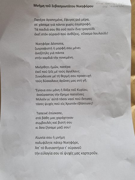 Ευχαρίστησε την Ελληνική Κοινότητα Κινσάσας και τον Πρόεδρο της Γεράσιμο Ντούνη και την σύζυγο του ιατρό Παρασκευή Τρανταφύλλου Ντούνη που ανέλαβαν τις δαπάνες τόσο του Ιερού Μνημοσύνου κατά την ημέρα της Κυριακής όσο και την επομένη της εκδηλώσεως. Τέλος μαζί με τα κεράσματα δόθηκαν και καρποστάλ με την φωτογραφία του αειμνήστου και μεγάλου ιεραποστόλου Μητροπολίτου Κινσάσας Νικηφόρου, προς όλους τους πιστούς της Μητροπόλεως.