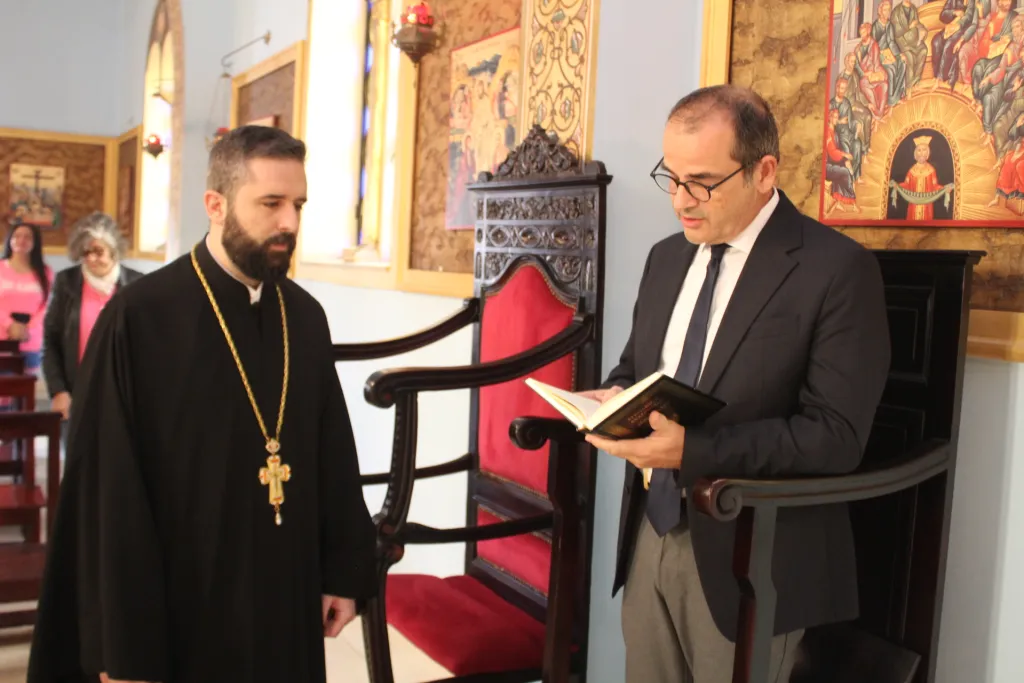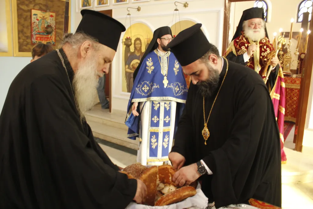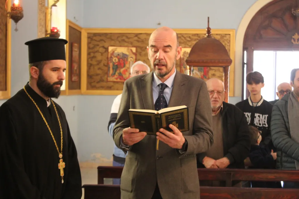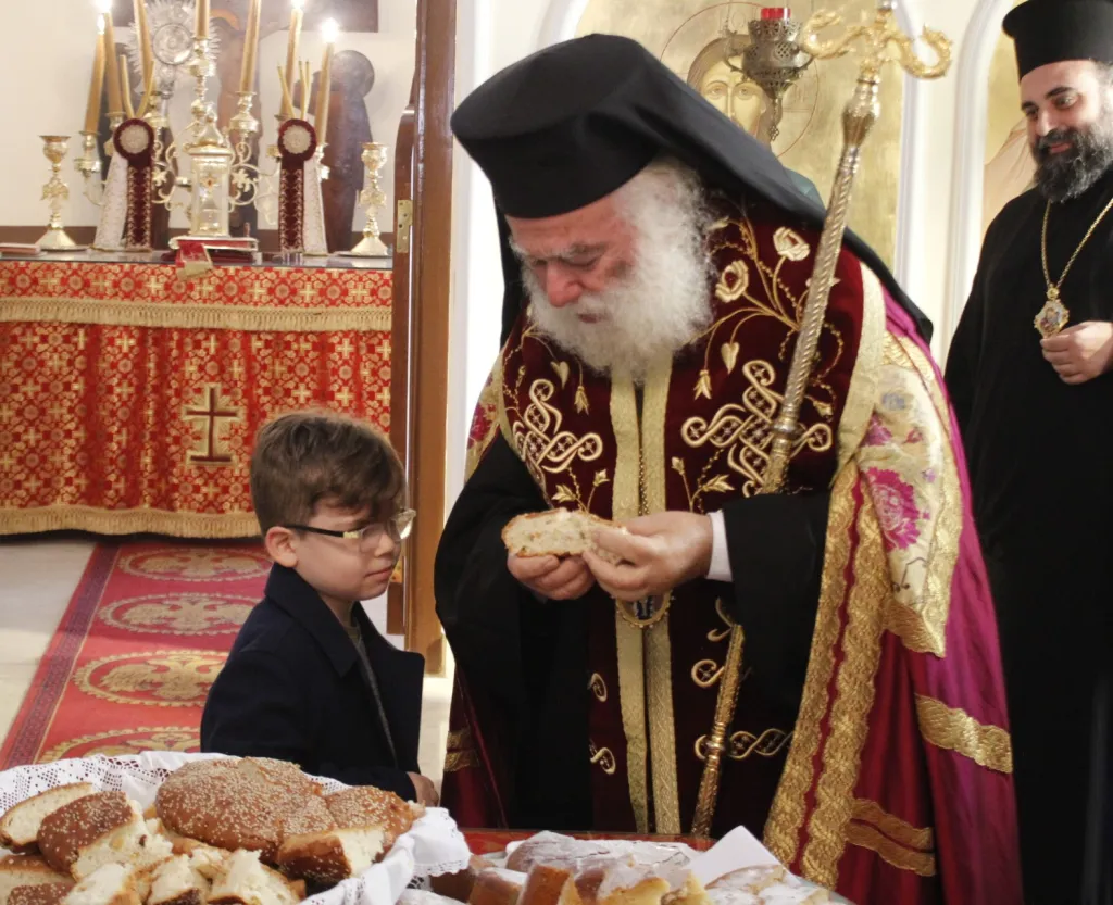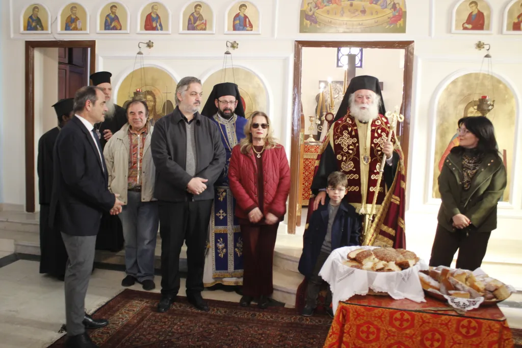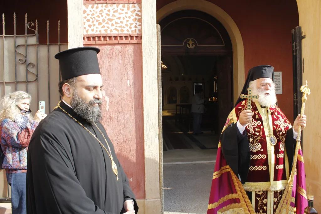Ο Μακαριώτατος ευχήθηκε τα “χρόνια πολλά” στους εορτάζοντες, μεταξύ των οποίων ο Γενικός Πρόξενος κ. Ιωάννης Πυργάκης και οι ιεροψάλτες κ. Ιωάννης Ράπτης και κ. Ιωάννης Γενειατάκης. Οι βυζαντινοί απεδόθησαν εξαιρετικά απ΄ τον εορτάζοντα Γενικό Πρόξενο με την αρωγή του κ. Γενειατάκη.