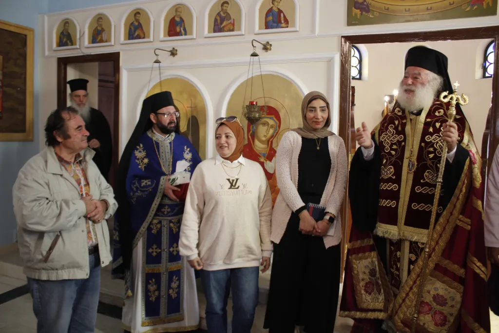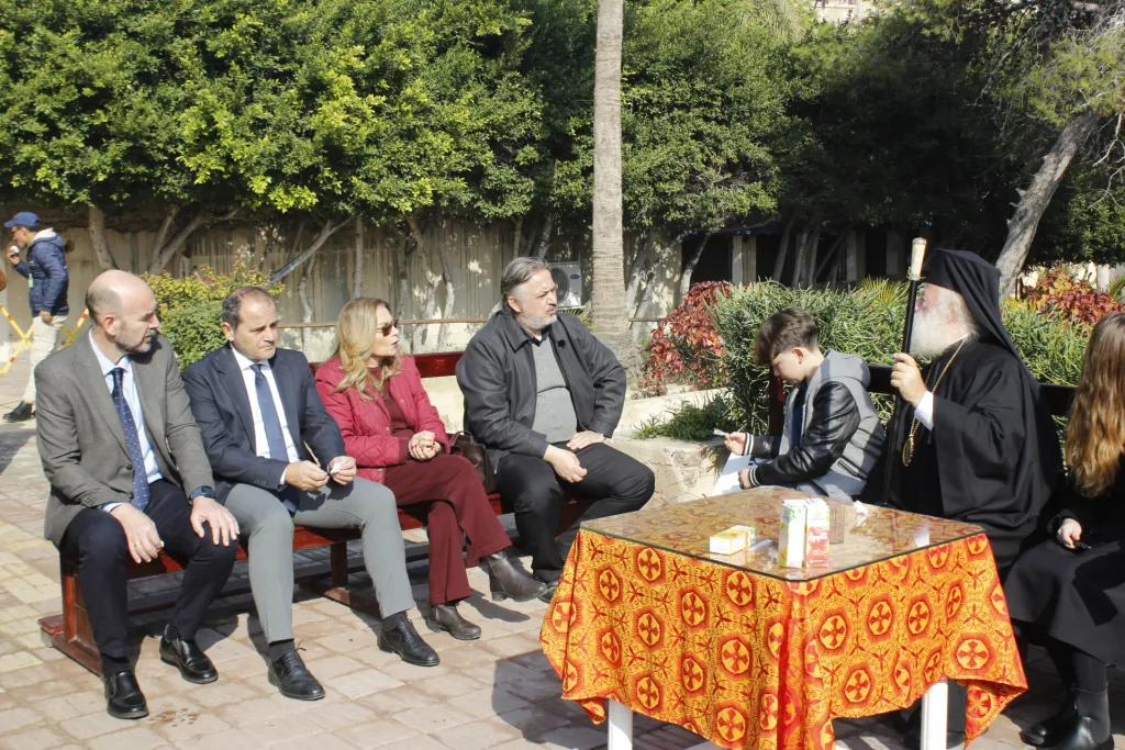 Μετά το πέρας της Θείας Λειτουργίας και την Περιφορά, τελέσθηκε Αγιασμός των Υδάτων και ακολούθησε κέρασμα από την Ελληνική Κοινότητα Αλεξανδρείας και τη σύζυγο του εορτάζοντος Γενικού Προξένου κα Κατερίνα Γιδαράκου, με εξαιρετική μηλόπιτα την οποία απόλαυσαν όλοι οι παριστάμενοι πιστοί της Παροικίας.