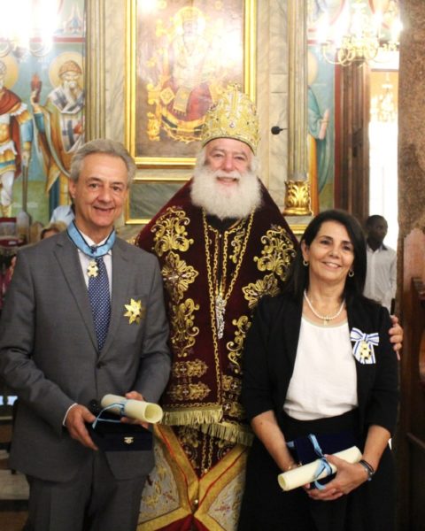 Επίσης, περιεκόσμησε τον απερχόμενο Γενικό Πρόξενο της Ελλάδος στην Αλεξάνδρεια, κ. Αθανάσιο Κοτσιώνη, νέο Πρέσβυ της Ελλάδος στην Νιγηρία με την τιμητική διάκριση του Ανωτέρου Ταξιάρχη του Τάγματος Οσίου Σάββα Ηγιασμένου, καθώς και την σύζυγό του κα. Ιωάννα Δημητρίου-Κοτσώνη με τον αντίστοιχο Ταξιάρχη, εκφράζοντας ευχαριστίες για την αγαστή συνεργασία τους.