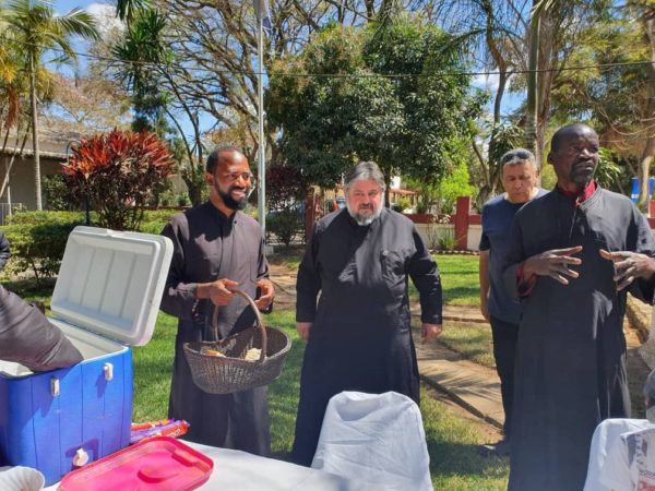Αμέσως μετά την Αρχιερατική Θεία Λειτουργία, ιερουργούντος του Σεβ. Μητροπολίτη Ζάμπιας και Μοζαμβίκης κ. Ιωάννη, πραγματοποιήθηκε λιτανεία με την εικόνα του Αγίου Αλεξάνδρου και ευλογία της Φανουρόπιτας.