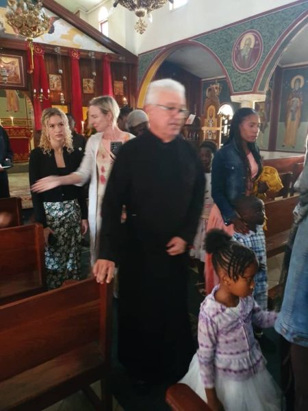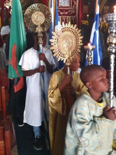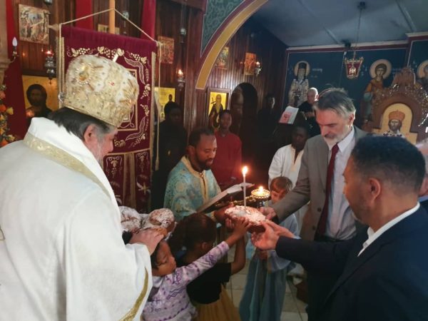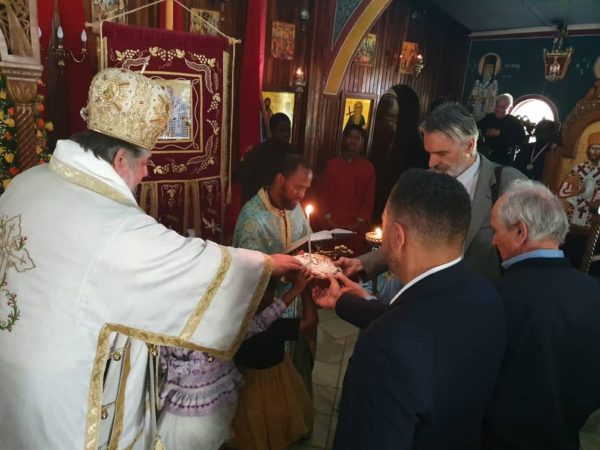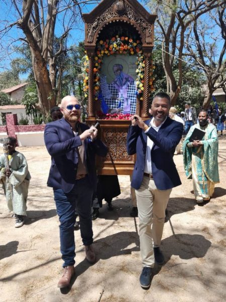 Αμέσως μετά την Αρχιερατική Θεία Λειτουργία, ιερουργούντος του Σεβ. Μητροπολίτη Ζάμπιας και Μοζαμβίκης κ. Ιωάννη, πραγματοποιήθηκε λιτανεία με την εικόνα του Αγίου Αλεξάνδρου και ευλογία της Φανουρόπιτας.