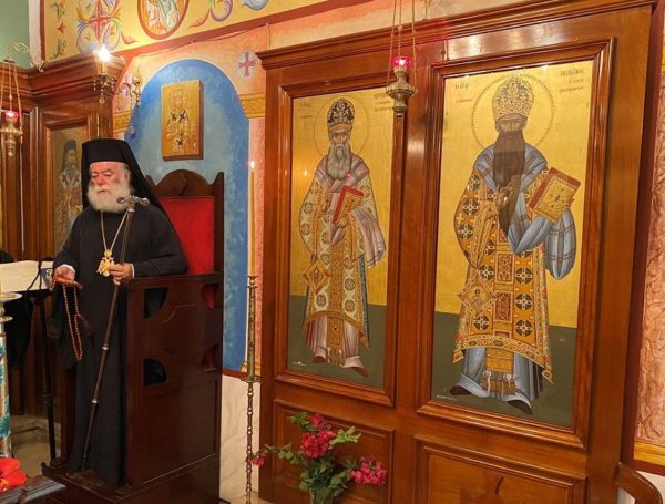 Ο Πατριάρχης, βαδίζοντας με τον νου στα ιστορικά καλντερίμια της Μονής της μετανοίας του, της ιστορικής Μονής της Αγκαράθου απ’ όπου ξεκίνησε την Εκκλησιαστική του πορεία και ο εορτάζων Άγιος, εξήρε την μορφή του Μεγάλου Ιεράρχου της Ορθοδόξου Εκκλησίας, ο οποίος αγωνίσθηκε ως λέων για την διατήρηση της Ορθοδόξου πίστεως στις χώρες της Ουκρανίας και της Πολωνίας, μαχώμενος κατά της Ουνίας.