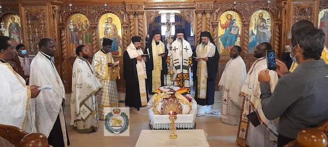 Μετά τη Θεία Λειτουργία, στην οποία προέστη ο Σεβ. Μητροπολίτης Γουινέας κ. Γεώργιος, Πατριαρχικός Εκπρόσωπος στην Αθήνα, εψάλη Επιμνημόσυνη Δέηση. Παρόντες ήταν οι Σεβ. Μητροπολίτες Πτολεμαΐδος κ. Εμμανουήλ, Καμερούν κ. Γρηγόριος, Ζάμπιας και τοποτηρητής Μοζαμβίκης κ. Ιωάννης, μαζί και ουγκαντέζοι Κληρικοί, που παρεπιδημούν στην Ελλάδα.