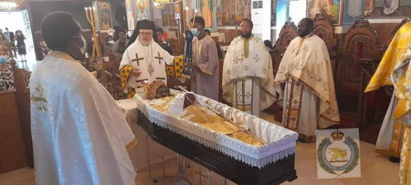 Μετά τη Θεία Λειτουργία, στην οποία προέστη ο Σεβ. Μητροπολίτης Γουινέας κ. Γεώργιος, Πατριαρχικός Εκπρόσωπος στην Αθήνα, εψάλη Επιμνημόσυνη Δέηση. Παρόντες ήταν οι Σεβ. Μητροπολίτες Πτολεμαΐδος κ. Εμμανουήλ, Καμερούν κ. Γρηγόριος, Ζάμπιας και τοποτηρητής Μοζαμβίκης κ. Ιωάννης, μαζί και ουγκαντέζοι Κληρικοί, που παρεπιδημούν στην Ελλάδα.