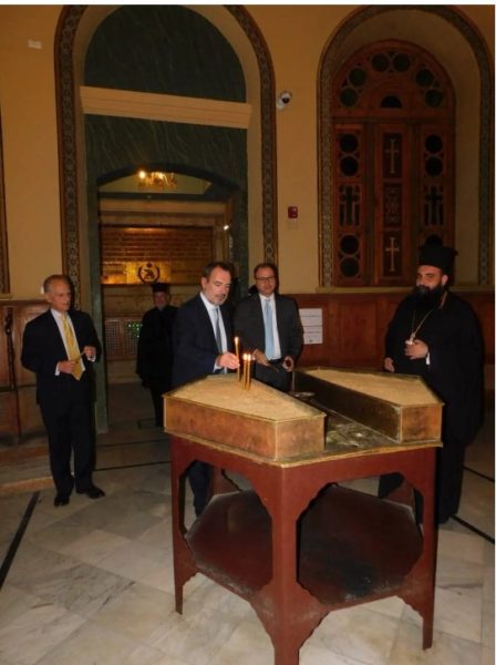 Στο πλαίσιο της επίσημης επίσκεψής του στην Αίγυπτο ο Έλληνας Υφυπουργός Εξωτερικών κ. Ανδρέας Κατσανιώτης επισκέφτηκε το απόγευμα της Τρίτης 15 Νοεμβρίου την Μονή του Αγίου Γεωργίου στο Παλαιό Κάιρο.
