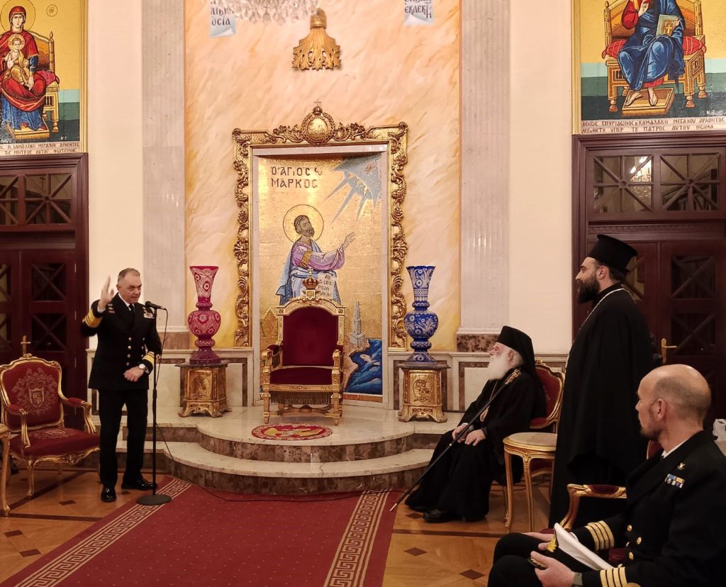 Εθιμοτυπική επίσκεψη στην Πατριαρχική Καθέδρα Αλεξανδρείας πραγματοποίησε το απόγευμα της Δευτέρας, 7 Απριλίου 2025, ο Αντιναύαρχος Π.Ν. κ. Δημήτριος-Ελευθέριος Κατάρας, Αρχηγός του Γενικού Επιτελείου Ναυτικού της Ελλάδος.