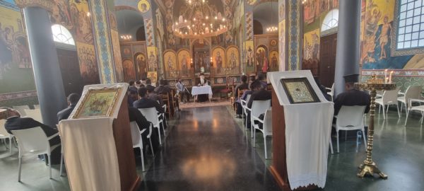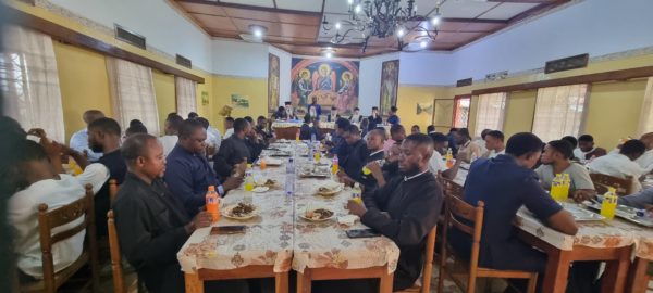 Την επομένη ημέρα πραγματοποιήθηκε Ιερατική Σύναξη στον Ιερό Μητροπολιτικό Ναό του Αγίου Νικολάου της Ελληνικής Κοινότητας Κινσάσας με εισηγητές τον Μητροπολίτη Μεσογαίας κ Νικόλαο και τον Αρχιμανδρίτη π. Αστέριο Χατζηνικολάου Προϊστάμενο της Αδελφότητας Θεολόγων «Ο ΣΩΤΗΡ».