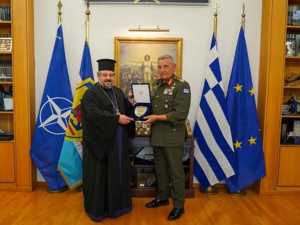 Η επίσκεψη του Σεβασμιωτάτου στο Γενικό Επιτελείο Εθνικής Άμυνας ολοκληρώθηκε με συναντήσεις του με τον Διοικητή της Διεύθυνσης Ειδικού Πολέμου, Αντιστράτηγο Δημήτριο Χούπη, με τον Διευθυντή Β΄ Κλάδου ΓΕΕΘΑ, Υποναύαρχο Ιωάννη Πάττα, με τον Διοικητη της Διακλαδικής Διεύθυνσης Εικικών Επιχειρήσεων, Υποστράτηγο Κωνσταντίνο Αλεξάκη και τέλος με τον Διευθυντή του Σώματος των Στρατιωτικών Ιερέων Αρχιμανδρίτη Μελέτιο Κουράκλη.