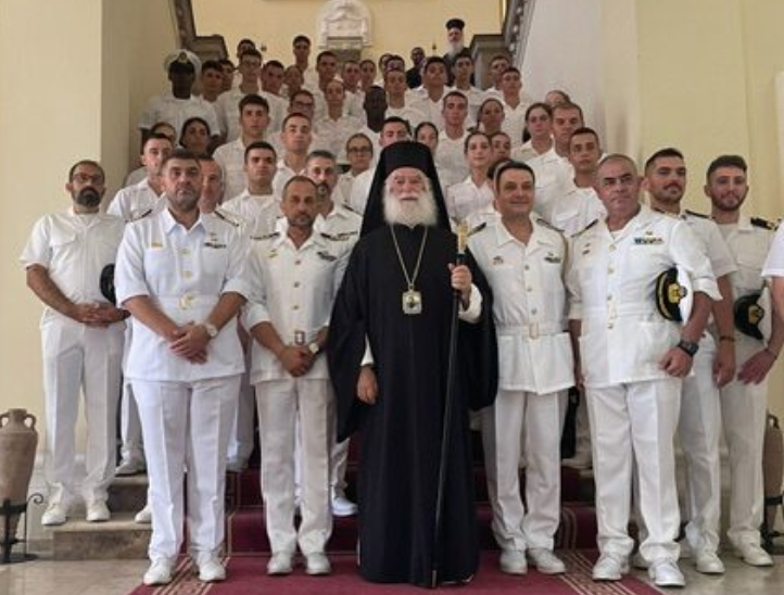 Επίσκεψη στην έδρα του Παλαιφάτου Πατριαρχείου Αλεξανδρείας πραγματοποίησαν την Πέμπτη, 25η Ιουλίου 2024, ο κυβερνήτης, οι αξιωματικοί οι δόκιμοι υπαξιωματικοί της Σχολής Μονίμων Υπαξιωματικών Π.Ν. (Σ.Μ.Υ.Ν.) και τα μέλη του πληρώματος του ελληνικού πολεμικού πλοίου Α/Γ «Χίος», το οποίο κατέπλευσε στο λιμάνι της Αλεξάνδρειας στo πλαίσιo του θερινού εκπαιδευτικού πλου.