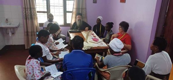 Παράλληλα, το Σεμινάριο Ιεροραπτικής συνεχίζεται από την κ. Αγγελική Πετροπούλου που ήλθε από τα Ιωάννινα με την ευλογία του Σεβ. Μητροπολίτη Ιωαννίνων κ. Μαξίμου, μεγάλου ευεργέτη της Επισκοπής Μπουκόμπας. Το Σεμινάριο παρακολουθούν 10 ορθόδοξα κορίτσια στον ξενώνα της «ΑΓΙΑΣ ΑΚΥΛΙΝΑΣ».
