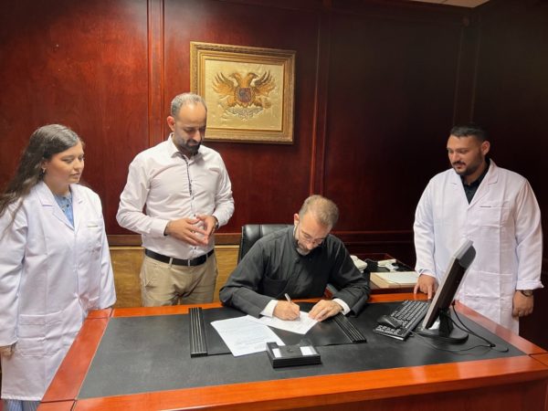Ο Σεβασμιώτατος Μητροπολίτης Ναυκράτιδος κ. Παντελεήμων, Αρχιγραμματέας της Αγίας και Ιεράς Συνόδου του Πατριαρχείου Αλεξανδρείας, με τη σεπτή εντολή και ευλογία του Μακαριωτάτου Πάπα και Πατριάρχη Αλεξανδρείας και πάσης Αφρικής κ.κ. Θεοδώρου Β’, δέχθηκε το Σάββατο 15 Ιουλίου 2023 στο Πατριαρχικό Μέγαρο της Αλεξανδρείας τον κ. Δημήτριο Αλκλήφ, νόμιμο εκπρόσωπο της Εταιρείας Διαχειρίσεως και Συντηρήσεως εκκλησιαστικών κειμηλίων «ΚΟΙΝ.Σ.ΕΠ. Παντοκράτωρ», συνοδευόμενο από τους συντηρητές εκκλησιαστικών κειμηλίων κ. Παρασκευά Βαλαβάνη και κα. Στυλιανή Περμαθούλη.