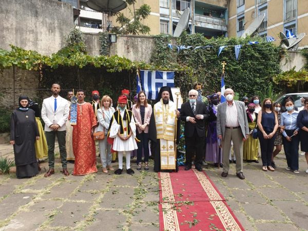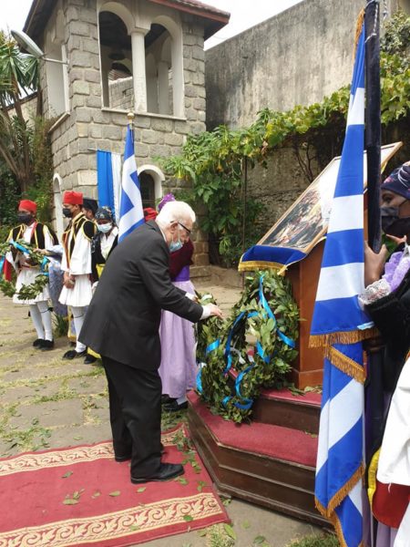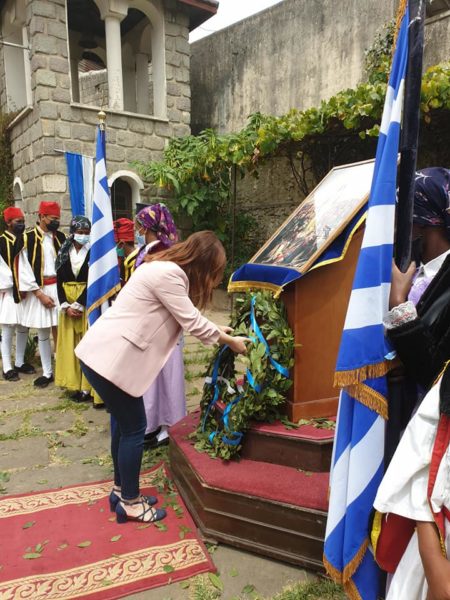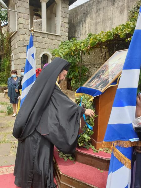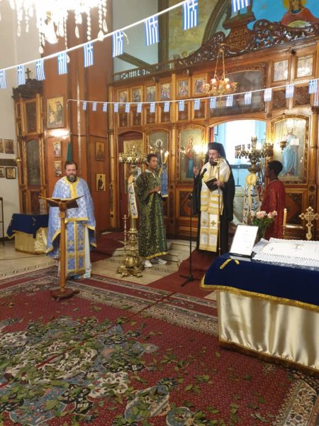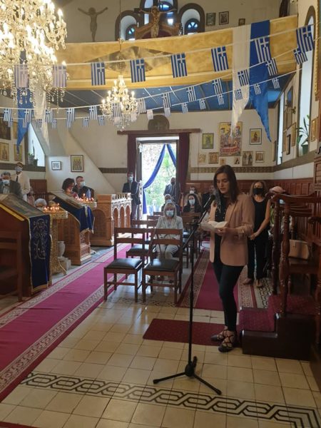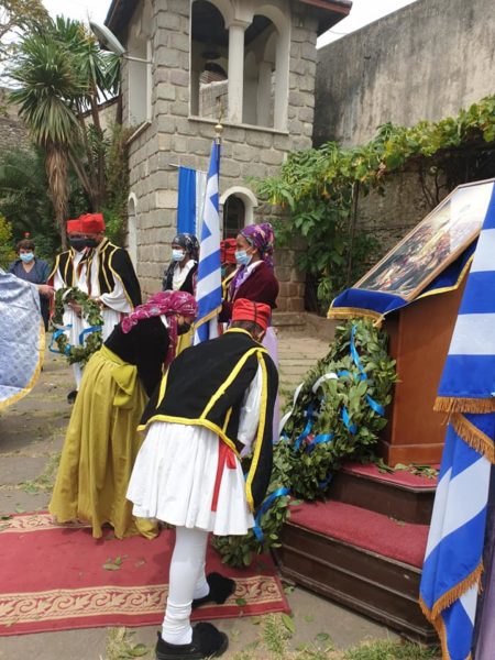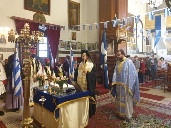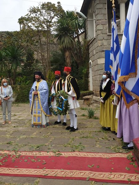 Κατά τον Θείο λόγο ο Σεβασμιώτατος ανέγνωσε μήνυμα του Αλεξανδρινού Προκαθημένου για την επέτειο των 200 ετών από την Ελληνική Επανάσταση, ενώ η Επιτετραμμένη ανέγνωσε μήνυμα της Εξοχ. Προέδρου της Ελληνικής Δημοκρατίας.