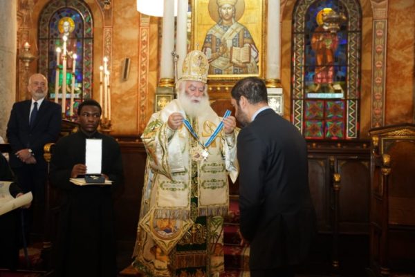 Στη συνέχεια τίμησε και τους δυο προσκαλώντας κοντά του πρώτα τον Υφυπουργό, τον οποίο περικόσμησε με την Ανώτατη Διάκριση της αρχαίας πατριαρχικής τάξεως Παραβαλανέων Σάββα του Ηγιασμένου μετ’ αστέρος του Πατριαρχείου και μετά τον Αρχηγό ΓΕΕΘΑ, τον οποίο επίσης περικόσμησε με Ανώτερο Ταξιάρχη μετ’ αστέρος του Τάγματος του Λέοντος Αλεξανδρείας, ανώτερη διάκριση του Πατριαρχείου Αλεξανδρείας για υψηλόβαθμους αξιωματικούς των τριών Όπλων . Αμφότεροι τίμησαν με τη σειρά τους τον Μακαριώτατο προσφέροντάς του εξαίρετα αναμνηστικά δώρα.