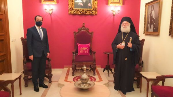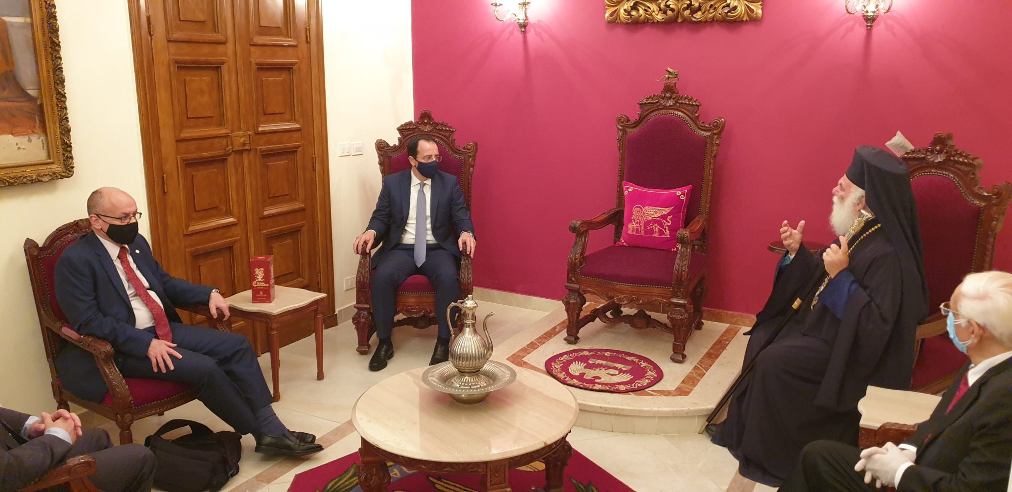 Στο «πολυεπίπεδο έργο» του Πατριάρχη Αλεξανδρείας κ.κ. Θεοδώρου Β’, το οποίο, όπως είπε, αναγνωρίζεται «σε ολόκληρη την περιοχή», αναφέρθηκε ο Υπουργός Εξωτερικών της Κύπρου, Νίκος Χριστοδουλίδης κατά τη συνάντησή του με τον Αλεξανδρινό Προκαθήμενο το Σάββατο 22 Μαΐου 2021. Τις ευχές του προς τον κυπριακό λαό «να έρθει η δικαίωση» έδωσε από την πλευρά του ο Μακαριώτατος, υποδεχόμενος τον Υπουργό Εξωτερικών στη δεύτερη έδρα του Παλαίφατου Πατριαρχείου, στο Κάιρο.