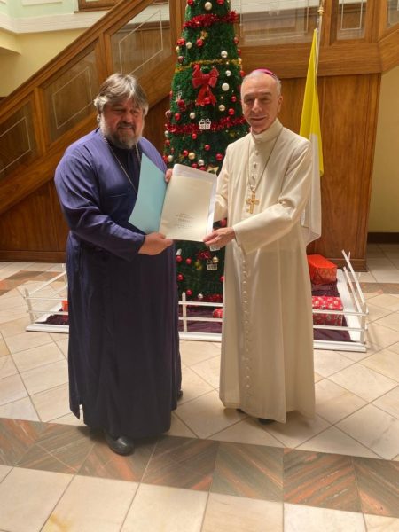 Τέλος, αντάλλαξαν ευχές και δώρα με την ευκαιρία της επικείμενης γιορτής των Χριστουγέννων.