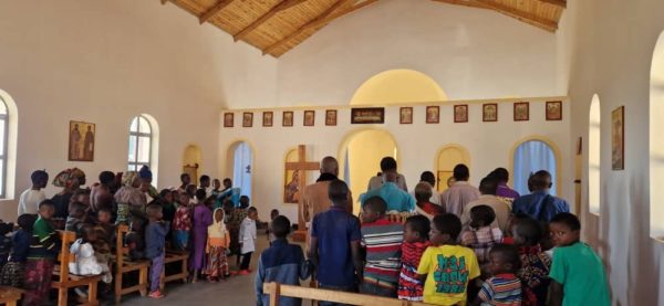 Θεία Λειτουργία τελέστηκε στον Ιερό Ναό Αγίου Παρθενίου στο Μκόμπε, σε ένα απομονωμένο χωριό, όπου οι κάτοικοι δεν έχουν ούτε τα βασικά αγαθά για την επιβίωσή τους. Στη Θεία Λειτουργία συμμετείχαν όλοι οι πιστοί του χωριού.