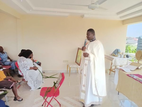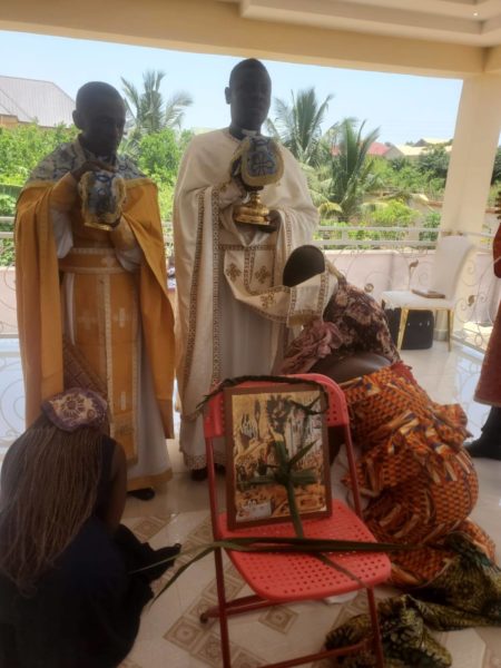 Με την ευλογία του Σεβασμιωτάτου Μητροπολίτου Άκκρας κ. Δανιήλ, οι Αιδεσιμότατοι π. Μάρκος Fianko Aidoo, Αρχιερατικός Επίτροπος Ασάντι, και π. Σαμψών Kodua, τέλεσαν τη Θεία Λειτουργία σε κατάλληλα διαμορφωμένο χώρο οικίας, την οποία ευλαβώς προσέφερε ο Ορθόδοξος ιατρός Δρ. Syms Kyei Mensah. Ο κ. Mensah είναι εγγονός του αειμνήστου Πρωτοπρεσβυτέρου π. John Sarkordie Aidoo.