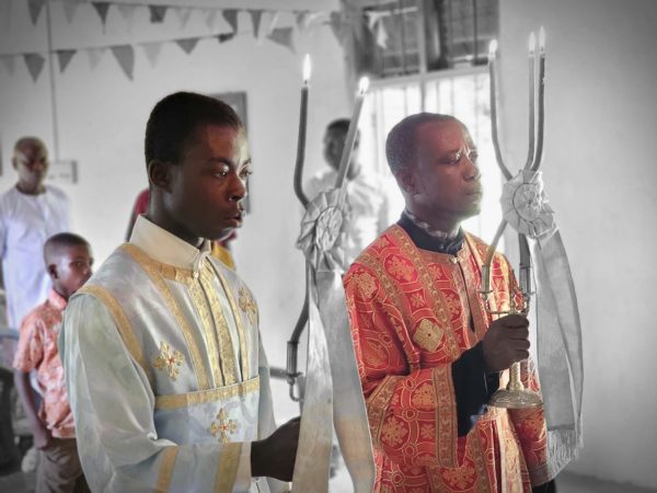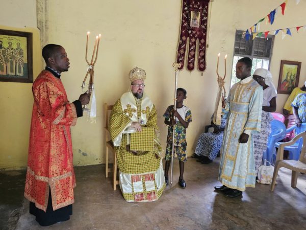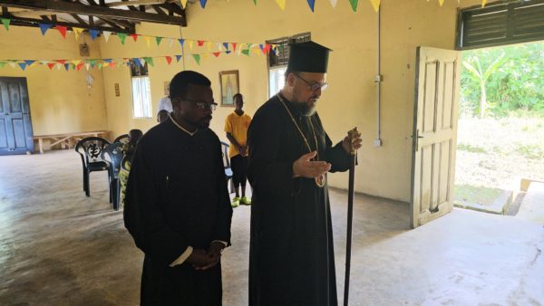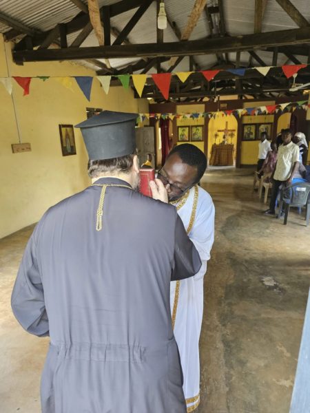 Συλλειτουργοί του Σεβασμιωτάτου οι Αιδεσιμότατοι Ιερείς π. Βασίλειος Labi, υπεύθυνος του Ιερού Ναού και ο π. Αιδέσιος Mukeke.