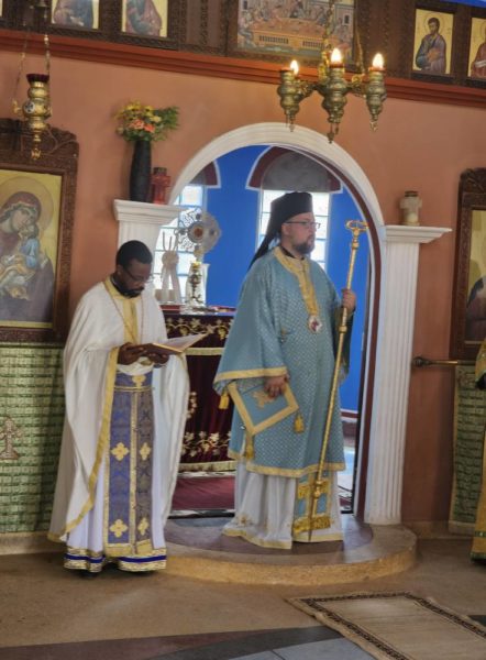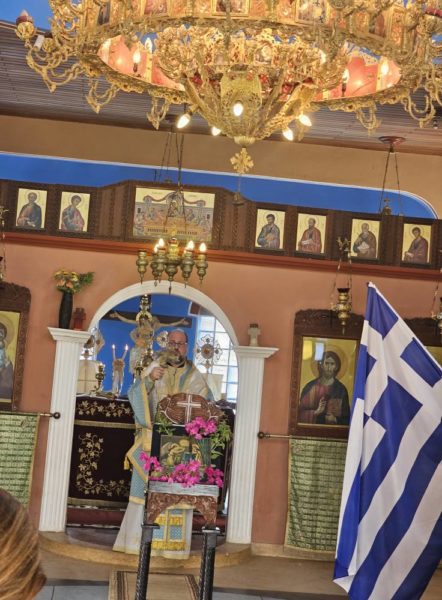 Ο Σεβασμιώτατος Μητροπολίτης Άκκρας κ. Δανιήλ τέλεσε Αρχιερατική Θεία Λειτουργία, μαζί με τον Πανοσιοτ. Αρχιμ. π. Αιδέσιο και τον Αιδεσιμολ. Πρωτοπρ. π. Ειρηναίο. Εντός του Ιερού Ναού κυμάτιζαν οι σημαίες των δύο χωρών, αποδίδοντας τιμή στους ήρωες της ελευθερίας, οι οποίοι αγωνίσθηκαν για “του Χριστού την πίστη την Αγία και της πατρίδος την Ελευθερία”.