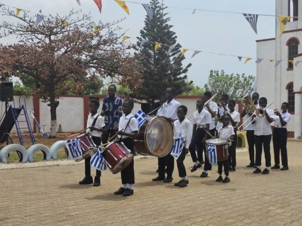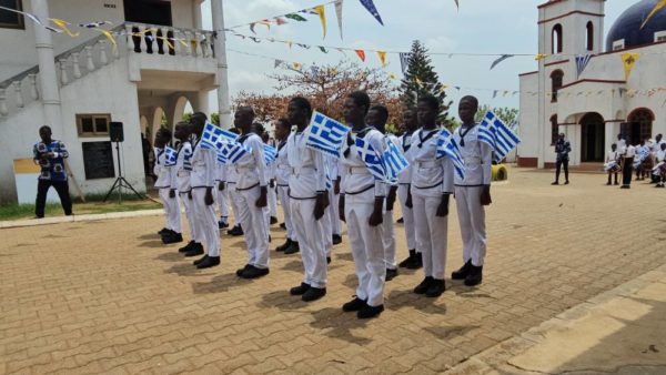 Οι περισσότεροι από τους 240 μαθητές του Σχολείου, μαζί με τους εκπαιδευτικούς τους, ήταν ντυμένοι στα γαλανά και κρατούσαν την Ελληνική σημαία, εκφράζοντας την ευγνωμοσύνη τους προς τους Έλληνες που δημιούργησαν και συνεχίζουν να συντηρούν αυτήν την ποιοτική κοιτίδα γνώσης στην Γκάνα.