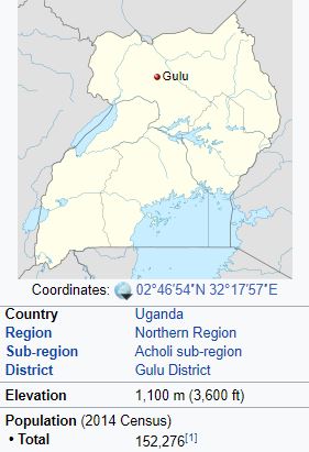 Η Gulu αποτελεί μία πόλη στα βόρεια της χώρας της Ουγκάντα. Η απόσταση μεταξύ της Gulu και της πρωτεύουσας Καμπάλα είναι περίπου 340 χιλιόμετρα.