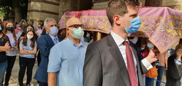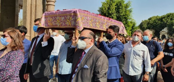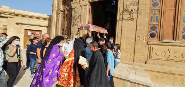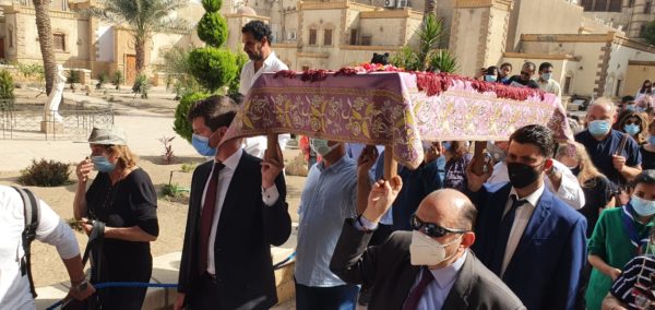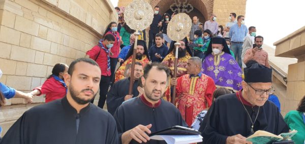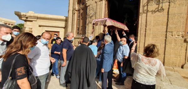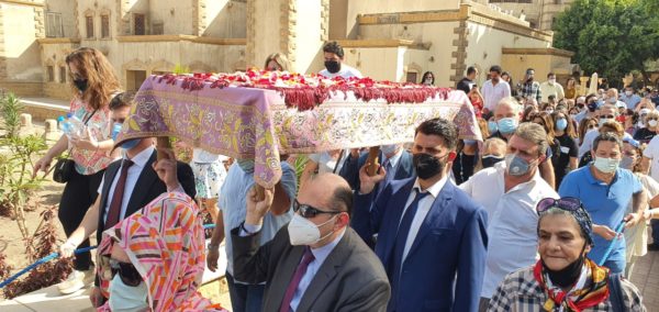 Οι καμπάνες χτυπούσαν πένθιμα στην Πατριαρχική Ιερά Μονή που είναι χτισμένη στα τείχη της Βαβυλώνας, εκεί όπου σώζονται μέχρι σήμερα τα δεσμά του Αγίου Γεωργίου και πρωτοχριστιανικές κατακόμβες.