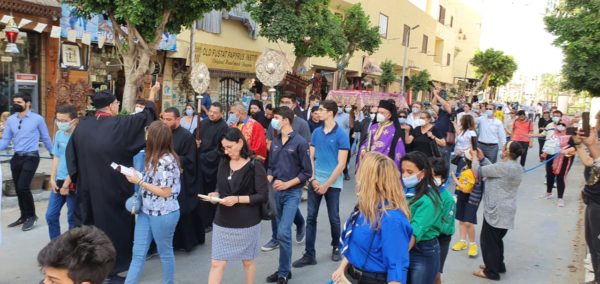 Μέσα σε κλίμα οδύνης οι Ορθόδοξοι Χριστιανοί του Καΐρου παρακολούθησαν την Περιφορά του Επιταφίου στην Ιερά Μονή του Αγίου Γεωργίου στο Παλαιό Κάιρο.