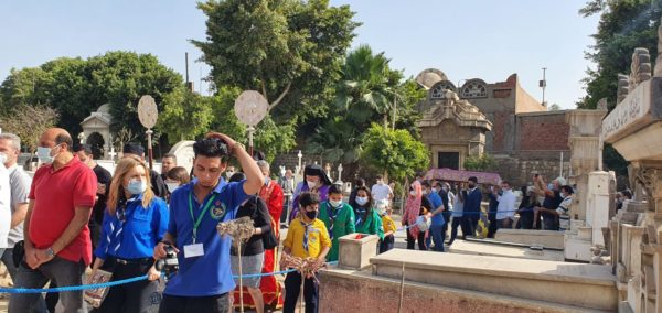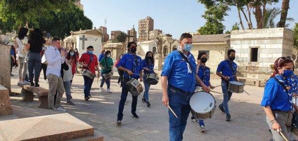Πένθιμο ήταν και το ανάκρουσμα της μπάντας των Προσκόπων του Καΐρου, οι οποίοι συνοδεύονταν από τον Ανδρέα Γιόσρι, Περιφερειακό Έφορο Αποδήμων Προσκόπων και Κοινοτικό Επίτροπο και τον Αρχηγό τους κ. Γιάννη Μελαχροινούδη. Η περιφορά του Επιταφίου έγινε στον κεντρικό δρόμο έξω από την Ιερά Μονή στο Παλαιό Κάιρο και στο Ελληνικό Κοιμητήριο.
