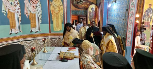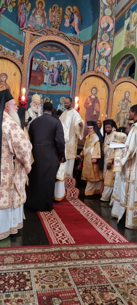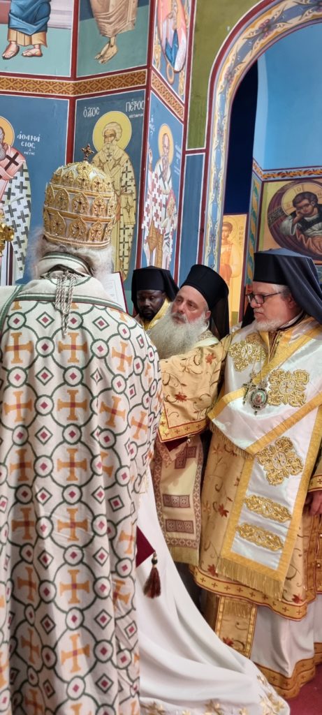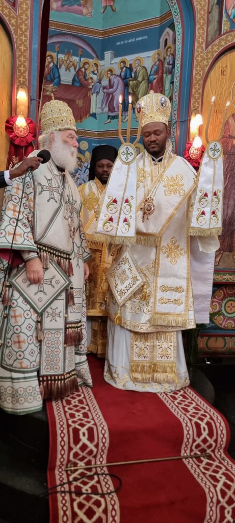 Της Θείας Λειτουργίας και του Μυστηρίου της Χειροτονίας, προεξήρχε ο Μακαριώτατος, ενώ συλλειτούργησαν μαζί του, οι Σεβασμιώτατοι Μητροπολίτες, Γουινέας κ. Γεώργιος, Κατάγκας κ. Μελέτιος, Κινσάσας κ. Θεοδόσιος, Κανάγκας κ. Χαρίτων, οι Θεοφιλέστατοι Επαρχιούχοι Επίσκοποι, Τζίτζα κ. Σίλβεστρος, Γκούλου κ. Νεκτάριος, Γκόμα κ. Τιμόθεος και ο βοηθός Επίσκοπος Κωνσταντιανής κ. Κοσμάς.