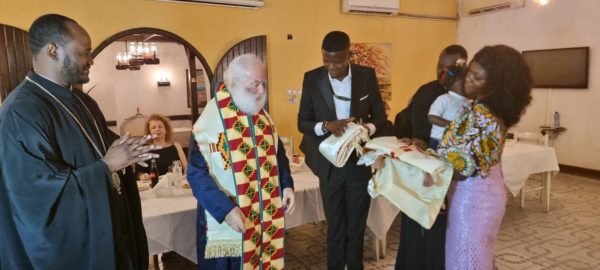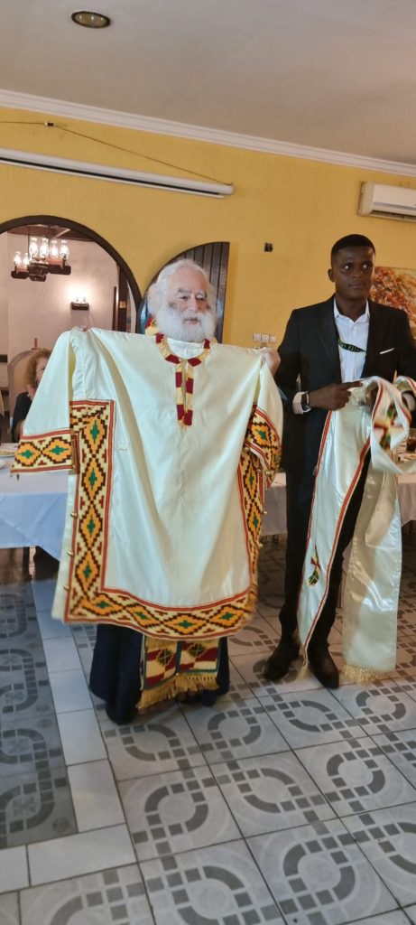 Μετά το πέρας της Θείας Λειτουργίας, η Ελληνική Κοινότητα για μια ακόμη φορά προσέφερε το εόρτιο γεύμα προς τιμήν του Μακαριώτατου, στο οποίο η κατά σάρκα, οικογένεια του νέου Ιεράρχου, προσέφερε μια Αρχιερατική Στολή στον Μακαριώτατο, με αφρικανικά χρώματα και παραστάσεις, ενώ παρουσίαστηκαν και τοπικοί παραδοσιακοί χοροί.