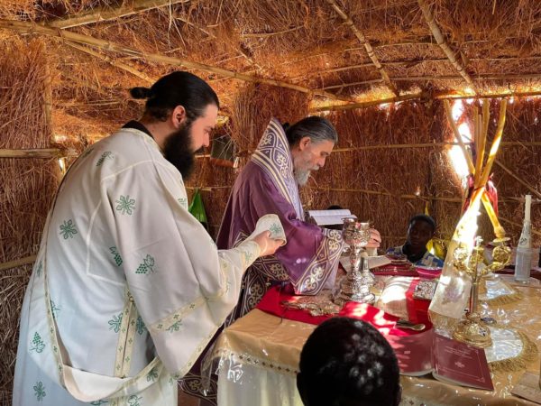 Στην απόλυση της Θείας Λειτουργίας, ο Θεοφιλέστατος Επίσκοπος Αρούσας και Κεντρικής Τανζανίας κ. Αγαθόνικος μίλησε στους πιστούς για τον Τίμιο Σταυρό, ενώ εξέφρασε την ευγνωμοσύνη του για την ευγενική πρόσκλησή τους και τους υποσχέθηκε πως στο εγγύς μέλλον το χωριό Μκόμπε θα αποκτήσει τον δικό του ιερό ναό.