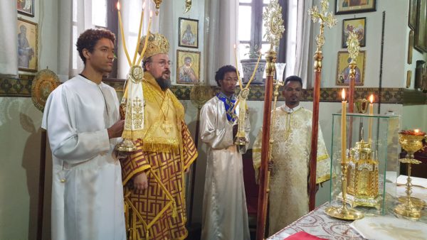 Συλλειτουργούντος του Πανοσιολ. Μ. Αρχιμ. του Θρόνου π. Χρυσοστόμου Μπαρμπέρη και με την παρουσία της Εξοχ. Πρέσβεως της Ελλάδος στην Αιθιοπία κ. Άννας Φάρρου, του Εντιμ. Προέδρου της Ελληνικής Κοινότητος κ. Δημητρίου Συκά, πολλών μελών της Ελληνικής Παροικίας και Ορθοδόξων πιστών Αιθιόπων, οι οποίοι συμμετείχαν στην Ευχαριστιακή Σύναξη για στο σπουδαίο εκκλησιαστικό γεγονός για την Ορθόδοξη Εκκλησία που παροικεί στο Κέρας της Ανατολικής Αφρικής.