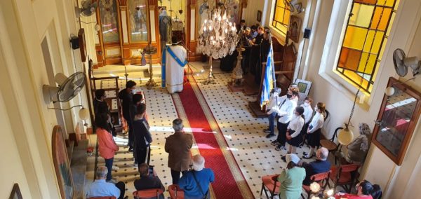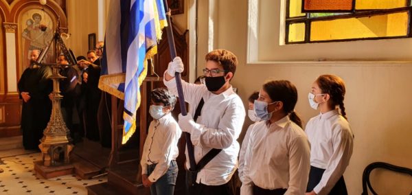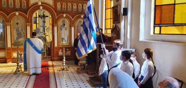 Τη Θεία Λειτουργία παρακολούθησε ο Διευθυντής της Αχιλλοπουλείου κ. Τάσος Αναστασίου, η υποδιευθύντρια της Αμπετείου κ. Μαρία Λιάκου καθώς και μαθητές των Ελληνικών Σχολείων.