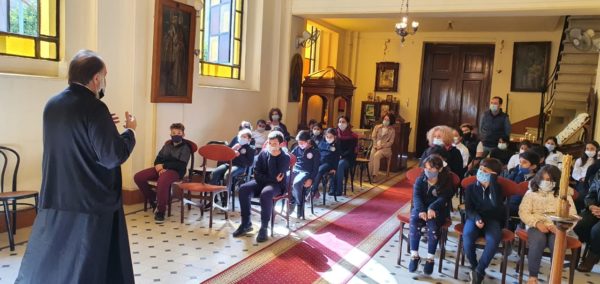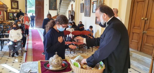 Αμέσως μετά ο υπεύθυνος των Κατηχητικών της Πατριαρχικής Επιτροπείας Καϊρου, Μ. Εκκλησιάρχης του Πατριαρχείου Αλεξανδρείας, Αρχιμ. Στέφανος Σουλιμιώτης συνομίλησε με τους μαθητές του Δημοτικού, του Γυμνασίου και του Λυκείου.