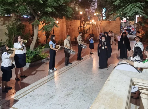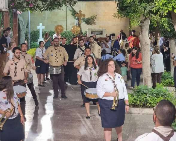 Οι Αραβώφωνοι πρόσκοποι έδωσαν το παρών για ακόμα μια φορά τηρώντας την τάξη και αποδίδοντας τιμές στην Μεγαλόχαρη παιανίζοντας τα πένθιμα εμβατήρια κατά την πάνδημη λιτάνευση της περίπτυστης Ιερής εικόνας στον προαύλιο χώρο του Ναού. Στιγμές άκρατου ενθουσιασμού από όλους τους πιστούς, οι οποίοι αγγίζοντας της εικόνα της Παναγίας κατά την μυσταγωγική περιφορά της ένιωθαν την ιερή δόνηση να αλαφρώνει την καρδιά τους και να μεταμορφώνει την έκφραση του προσώπου τους.