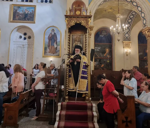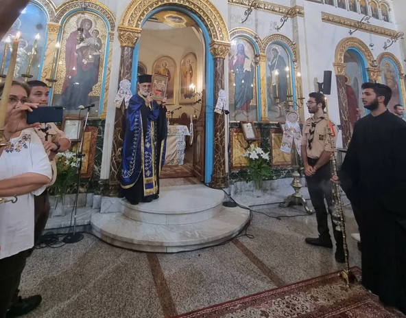 Στις 14 Αυγούστου στον κατάμεστο Ιερό Ναό της Παναγίας στην Ηλιούπολη του Καΐρου τελέστηκε ο κατανυκτικός Μέγας Αρχιερατικός Εσπερινός μετά αρτοκλασίας χοροστατούντος του Σεβασμιωτάτου Μητροπολίτου Μέμφιδος και Πατριαρχικού Επιτρόπου Καΐρου κ. Νικοδήμου. Το Ιερό Βήμα πλαισίωσαν επίσης ο Πρωτοσύγκελος της Ιεράς Μητροπόλεως Μέμφιδος Πανοσιολογιώτατος Αρχιμαδρίτης Μιχαήλ, ο Μέγας Εκκλησιάρχης του Πατριαρχείου Αλεξανδρείας και Πάσης Αφρικής Πανοσιολογιώτατος Αρχιμανδρίτης Στέφανος, ο Πανοσιολογώτατος Αρχιμανδρίτης Θεόδωρος, οι πατέρες Γιούσεφ, Παύλος, και ο Αρχιδιάκονος Παρθένιος. Τους ύμνους έψαλε ο Πρωτοψάλτης της Ελληνικής Κοινότητας Καΐρου κ. Αλέξανδρος Ρηγάκης με τον Αραβόφωνο Πρωτοψάλτη κ. Τόνυ Ατάλα και ομάδα Αραβόφωνων ψαλτών.