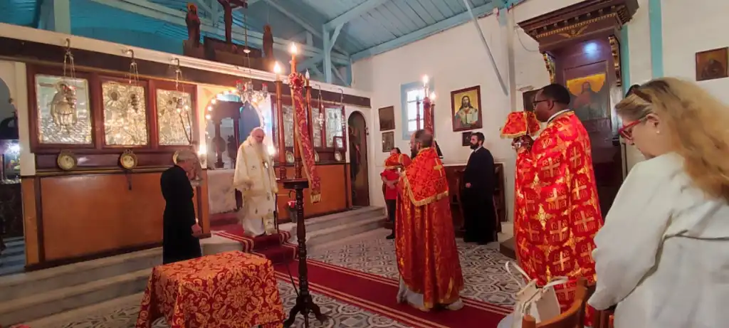 Στον Ιερό Ναό λειτούργησε ο Μητροπολίτης Ταμιάθεως κ. Γερμανός – Επίτροπος της Ιεράς Μονής Οσίου Σάββα του Ηγιασμένου, πλασιούμενος από τον Πανοσιολογιότατο Αρχιμανδρίτη κ. Παϊσιο, τον Πανοσιολογιότατο Αρχιμανδρίτη κ. Επιφάνιο και τον Αιδεσιμολογιώτατο Πρωτοπρεσβύτερο κ. Ευάγγελο απ΄ την εκκλησία του Ναιρόμπι.