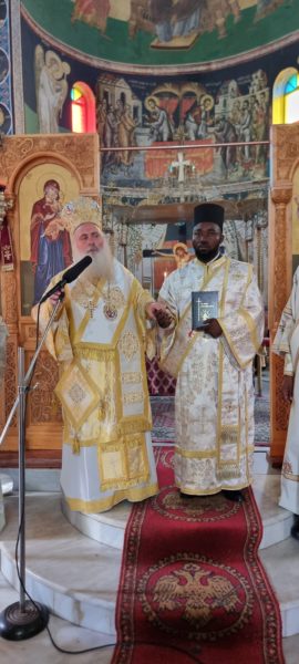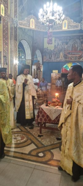 Την κυριώνυμο ημέρα τελέσθηκε Αρχιερατική Θεία Λειτουργία υπό του Σεβασμιωτάτου Μητροπολίτου Κινσάσας κ. Θεοδοσίου κατά την οποία ο Σεβασμιώτατος ομίλησε και τέλεσε την εις Διάκονον χειροτονία του μοναχού π. Κυπριανού.