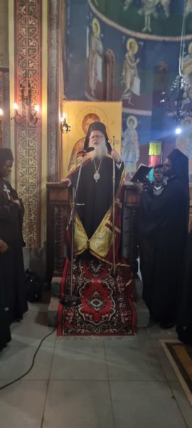 Το απόγευμα της παραμονής τελέσθηκε Αρχιερατικός Εσπερινός υπό του Σεβασμιωτάτου Μητροπολίτου Κινσάσας κ. Θεοδοσίου κατά τον οποίο ευλογηθήκαν οι άρτοι της αρτοκλασίας ενώ ακολούθησε κήρυγμα από τον Θεολόγο και Γραμματέα της Θεολογικής Σχολής κ. Ααρών.
