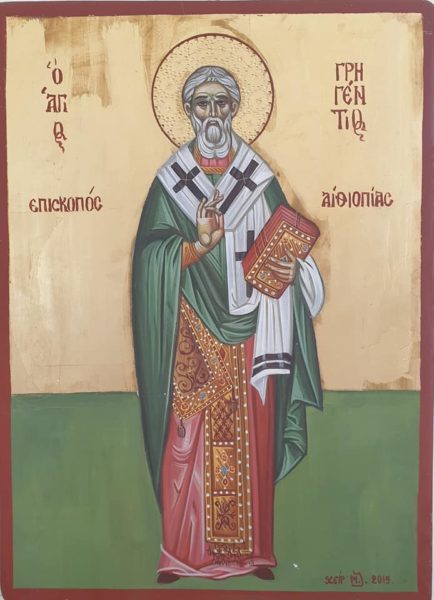 Εορτάσθηκε χθες η ιερά μνήμη του Αγίου Γρηγεντίου Αρχιεπισκόπου Αιθιοπίας, με την τέλεση Θείας Λειτουργίας και Αρτοκλασίας, στον Ιερό Καθεδρικό Κοινοτικό Ιερό Ναό Αγίου Φρουμεντίου Αδδίς Αμπάμπα, ιερουργούντος του Πανοσ. Πρωτοσυγκέλλου π. Χρυσοστόμου Μπαρμπέρη.