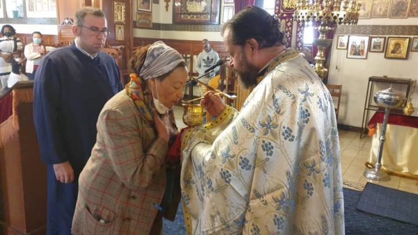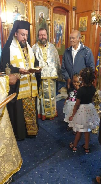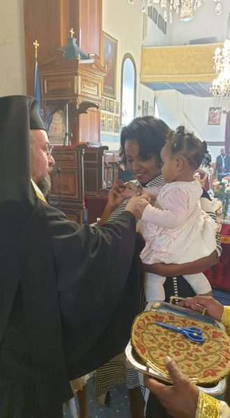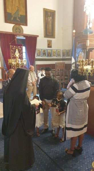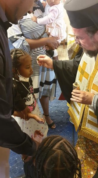 Κατά τη διάρκεια της Θείας Λειτουργίας, ο Σεβασμιωτάτος Μητροπολίτης Αξώμης κ. Δανιήλ τέλεσε την χρίση διά του Αγίου Μύρου και την εισδοχή τους στην Ορθόδοξη Ανατολική Εκκλησία, των τριών τέκνων της ελληνικής καταγωγής οικογενείας Βασιλικής Γιόκαρη- Ντάμπα, δίδοντάς τους τα ονόματα Εμμανουέλα, Μαριάνα και Μελίνα. Στη συνέχεια μετέλαβαν των Αχράντων Μυστηρίων.