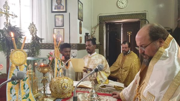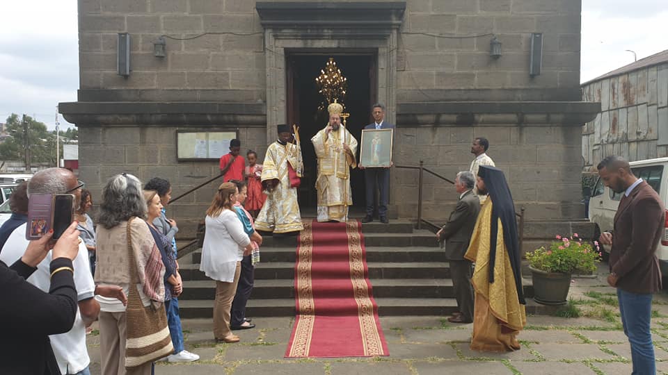 Στον ομώνυμο Καθεδρικό Κοινοτικό Ναό, στην αιθιοπική πρωτεύουσα Αδδίς Αμπέμπα, τελέσθηκε αρχιερατική Θεία Λειτουργία από τον Μητροπολίτη Αξώμης κ. Δανιήλ με συλλειτουργούς τον Πανοσιολ. Αρχιμ. π. Χρυσόστομο Μπαρμπέρη και τον Ιεροδιάκονο π. Αιδέσιο.