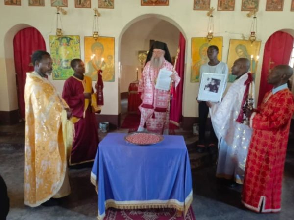 Στο τέλος της Θείας Λειτουργίας ευλογήθηκαν τα κόλλυβα του πρώτου Ιεραποστόλου Αγίου Χρυσοστόμου Παπασαραντόπουλου, και τους μίλησε για την ζωή του και την ιεραποστολική του πορεία στην Ουγκάντα, Κένυα, Τανζανία και Κογκό. Σημείωσε δε, ότι είναι καταγραμμένο ότι επισκέφθηκε ιεραποστολικά τρεις φορές την Τανζανία.