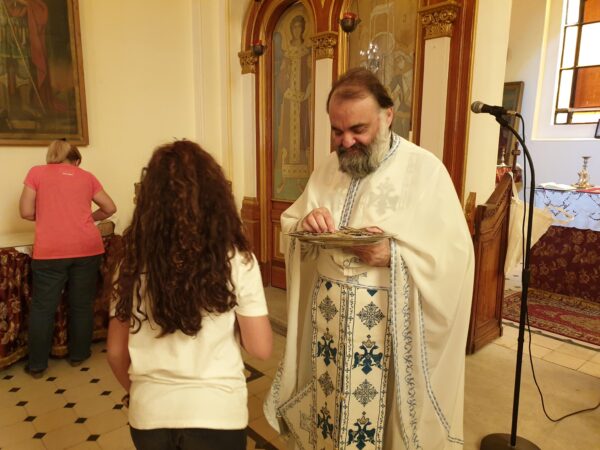 Μετά τη Θεία Λειτουργία, ο πατ. Στέφανος προσέφερε στους μαθητές στυλό για να θυμούνται ότι η ευλογία και οι ευχές του Πατριάρχη Αλεξανδρείας Θεόδωρου και του Μητροπολίτη Μέμφιδος κ. Νικόδημου, τους συντροφεύουν σε αυτή την «δοκιμασία».