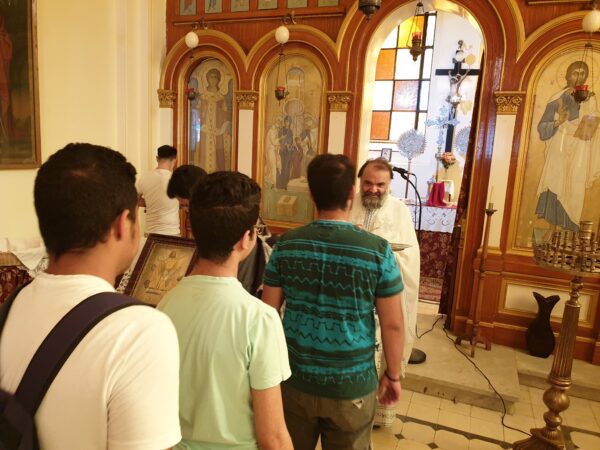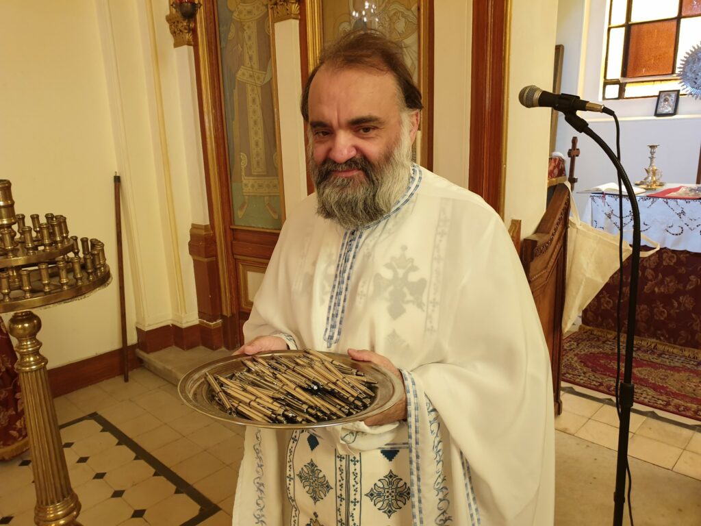 Μετά τη Θεία Λειτουργία, ο πατ. Στέφανος προσέφερε στους μαθητές στυλό για να θυμούνται ότι η ευλογία και οι ευχές του Πατριάρχη Αλεξανδρείας Θεόδωρου και του Μητροπολίτη Μέμφιδος κ. Νικόδημου, τους συντροφεύουν σε αυτή την «δοκιμασία».