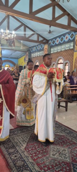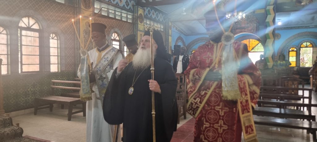 Ο Σεβασμιώτατος Μητροπολίτης Κινσάσας κ. Θεοδόσιος τέλεσε την Θεία Λειτουργία στον Ιερό Ναό του Αγίου Μάρκου Κινσάσας την Κυριακή των Αγίων Πάντων, 15 Ιουνίου 2025.