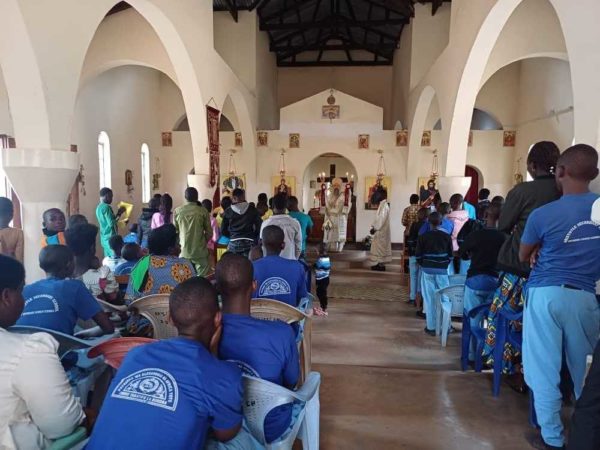 Από το πρωί ήταν γεμάτος ο Ναός με νέους από τις διάφορες Ενορίες, καθώς και από τους Ορθόδοξους μαθητές του Γυμνασίου ΑΡΙΣΤΟΤΕΛΗΣ. Η παρουσία των νέων έδωσε ένα άλλο χρώμα στην Θεία Λειτουργία. Αντηχούσε ο Ναός από την ψαλμωδία των νέων φωνών και η χαρά όλων ήταν μεγάλη. Συλλειτούργησαν με τον Επίσκοπο τους κ. Χρυσόστομο πολλοί Ιερείς, που προσήλθαν στο κάλεσμα του π. Καλλινίκου Rweyemamu Αρχιερατικού Επιτρόπου Καράγκουε. Οι Ενορίτες χάρηκαν την παρουσία των νέων. Κοινώνησαν όλοι και μετά συμμετείχαν στο κοινό γεύμα που είχαν ετοιμάσει οι Ορθόδοξες μητέρες.